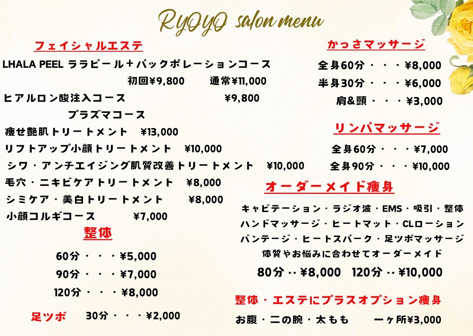 「小顔コース」「アンチエイジングコース」「モイスチャライジングコース」をご用意しております。