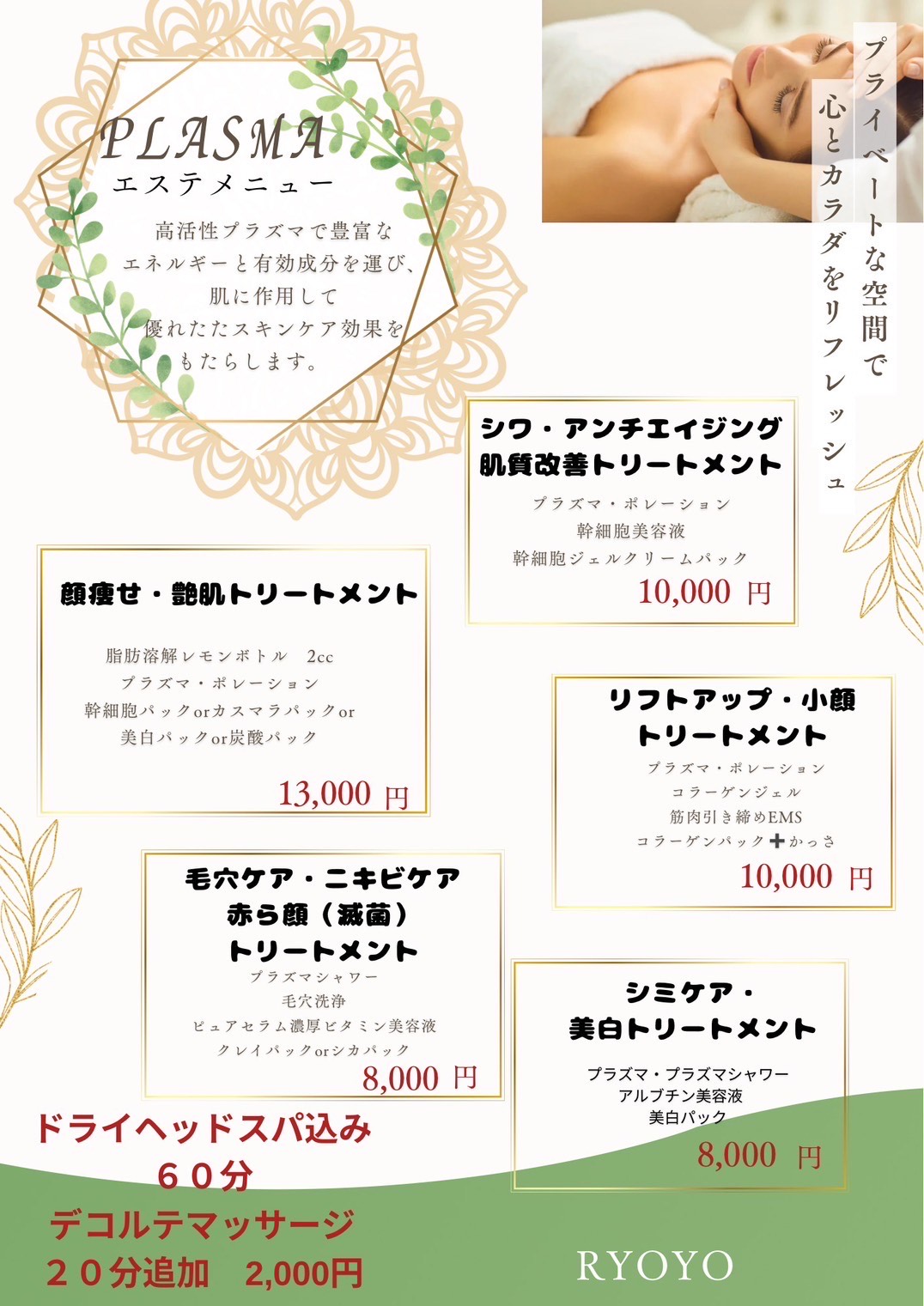 最新技術の高濃度炭酸「ヒートスパーク」を使ったフェイシャルエステ、ハンドによるもみほぐし、「ヒートスパーク」の痩身ボディメイクや、かっさマッサージで、リンパの流れを良くして、体調を整えます。